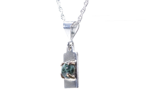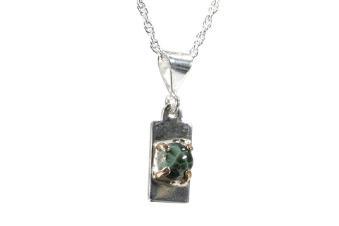 5 mm Greenstone in a Gold 4 prong setting on a Sterling Silver base.