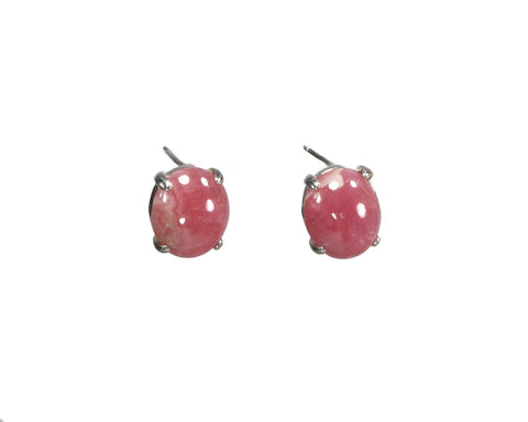 Both the  25 x 18mm pendant and 12 x 10mm post earrings are mounted in Sterling Silver 4 prong settings. Included as an 18" Sterling Silver chain with a spring ring clasp. Rhodocrosite:   Manganese carbonate MnCO3 with a Mohs 3.5 to 4.5   The color ranges from soft pink to a...