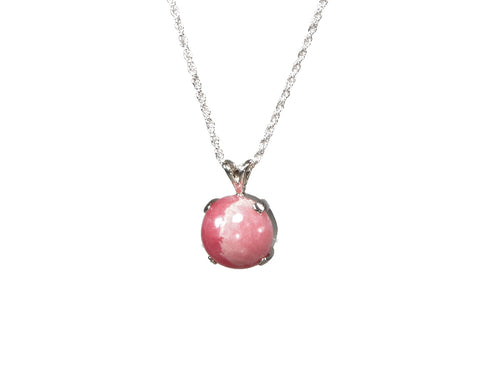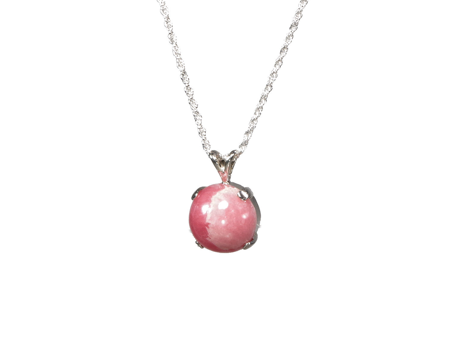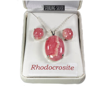 Both the 12mm pendant and 8mm post earrings are mounted in Sterling Silver 4 prong settings. Included as an 18" Sterling Silver chain with a spring ring clasp. Rhodocrosite: Manganese carbonate MnCO3 with a Mohs 3.5 to 4.5 The color ranges from soft pink to a deep rose with quartz...