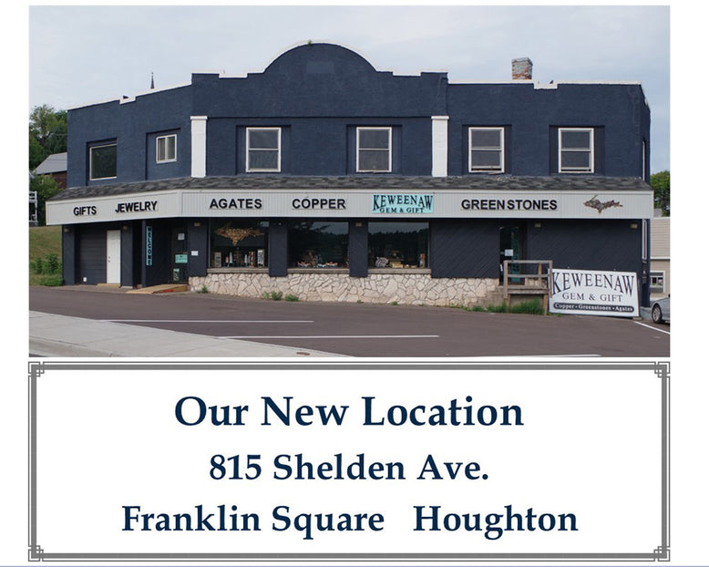 Established in 1981 by Ken Flood, Keweenaw Gem & Gift, Inc. specializes in rocks and minerals from Michigan. Acquired in 2024, Amanda Yaklin and Becky Quinn will proudly carry on the legacy. We feature Michigan native copper and the related ores to create unique gifts including bookends, clocks, and decorator pieces. Greenstones (Michigan’s state gemstone) and Lake Superior agates are fashioned into beautiful jewelry... utilizing your stones or ours. Keweenaw Gem & Gift is also Michigan’s largest supplier of Petoskey stone (Michigan’s state stone). Thank you for your continued support over the years!