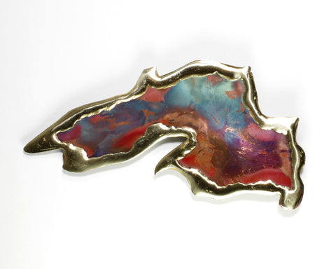 Torching adds color to the copper. Each piece is individually handcrafted and unique, and the photo shows a representative sample. Approximately 4"h x 2"w.